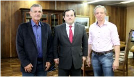 Vereadores de Matinhos visitaram o presidente do Tribunal de Contas do Estado do Paraná (TCE-PR), conselheiro Ivan Bonilha, para manifestar apoio às ações da nova gestão e informar sobre a situação politico-administrativa do município. Marcos Antonio Podbevesek, atual presidente da Câmara Municipal, e Márcio Duarte, ex-presidente, discorreram sobre os projetos que tramitam no Legislativo e manifestaram intenção de atuar sempre de acordo com as recomendações do TCE-PR.