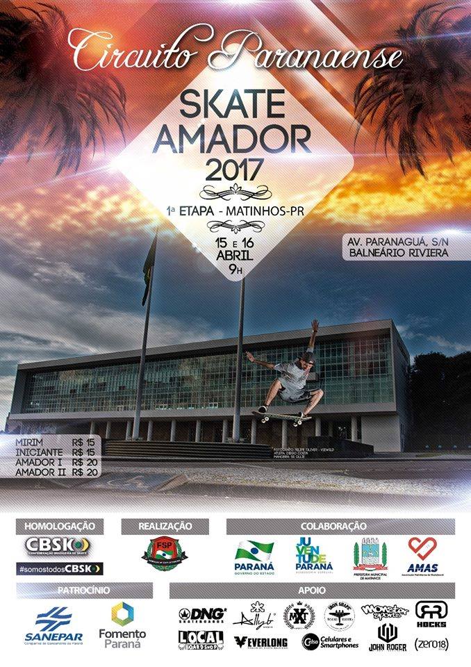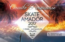 Vem ai a 1ª etapa do Circuito Paranaense de Skate Amador 2017, que acontece em Matinhos neste final de semana dias 15 e 16 de abril em Matinhos.