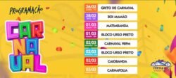 01/03 Bloco Urso preto- concentração 18:30h praça central e saída às 20:00h.