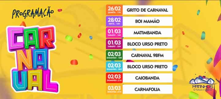 26/02 Grito de Carnaval- em frente a Casa da Cultura no calçadão central de Matinhos 17h.