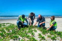 “A ideia é utilizar as espécies que já estão adaptadas ao ambiente costeiro, evitando trazer espécies de outras regiões. Estamos no processo de coleta que se chama germoplasma, então estamos removendo o material vegetativo e as sementes. Esse material deve ser feito antes da entrada das máquinas na areia”, disse.
