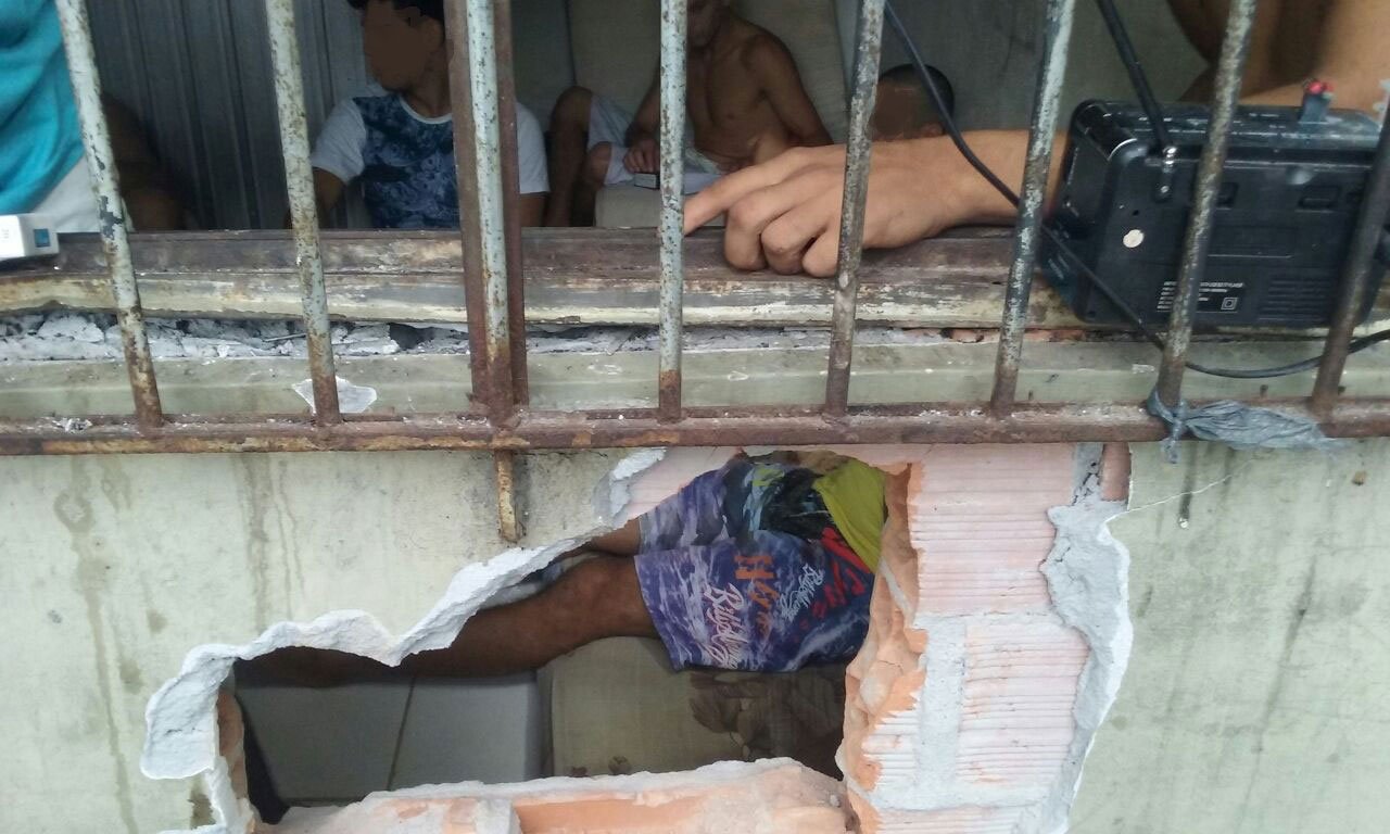 Os detentos abriram um buraco na parede, usando pedaços de barras de ferro como ferramentas.