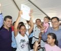 Richa fez a entrega das 100 primeiras escrituras aos moradores do bairro Vila Nova, de Matinhos. No local vivem 900 famílias que aguardam há 18 anos o processo de regularização fundiária.