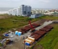 Essa etapa é de continuação dos trabalhos preliminares da dragagem, que começaram com a chegada dos tubos na cidade. O início efetivo das obras, que iniciará com a engorda da praia, está previsto para o mês de junho, após a interligação dos tubos de 12 metros cada. Essa rede será utilizada para a bombear areia e água da draga até a praia, promovendo aumento da faixa de areia.
